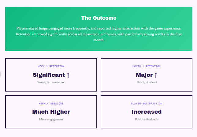 The Result: By removing the “fear of loss,” we actually saw higher daily consistency because the game remained a place of joy rather than a chore.